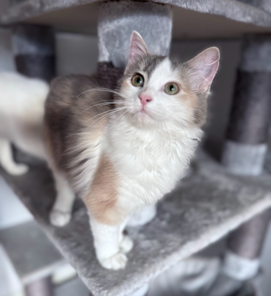 Squishy's ideal home is one where she has a feline friend to share her adventures, whether it's a friendly resident cat or one of her siblings. As a typical young kitten, Squishy's full personality is still forming, but her loving and playful spirit is already evident. Let Squishy become the delightful addition your family needsâshe's guaranteed to bring endless joy with her sweet antics!