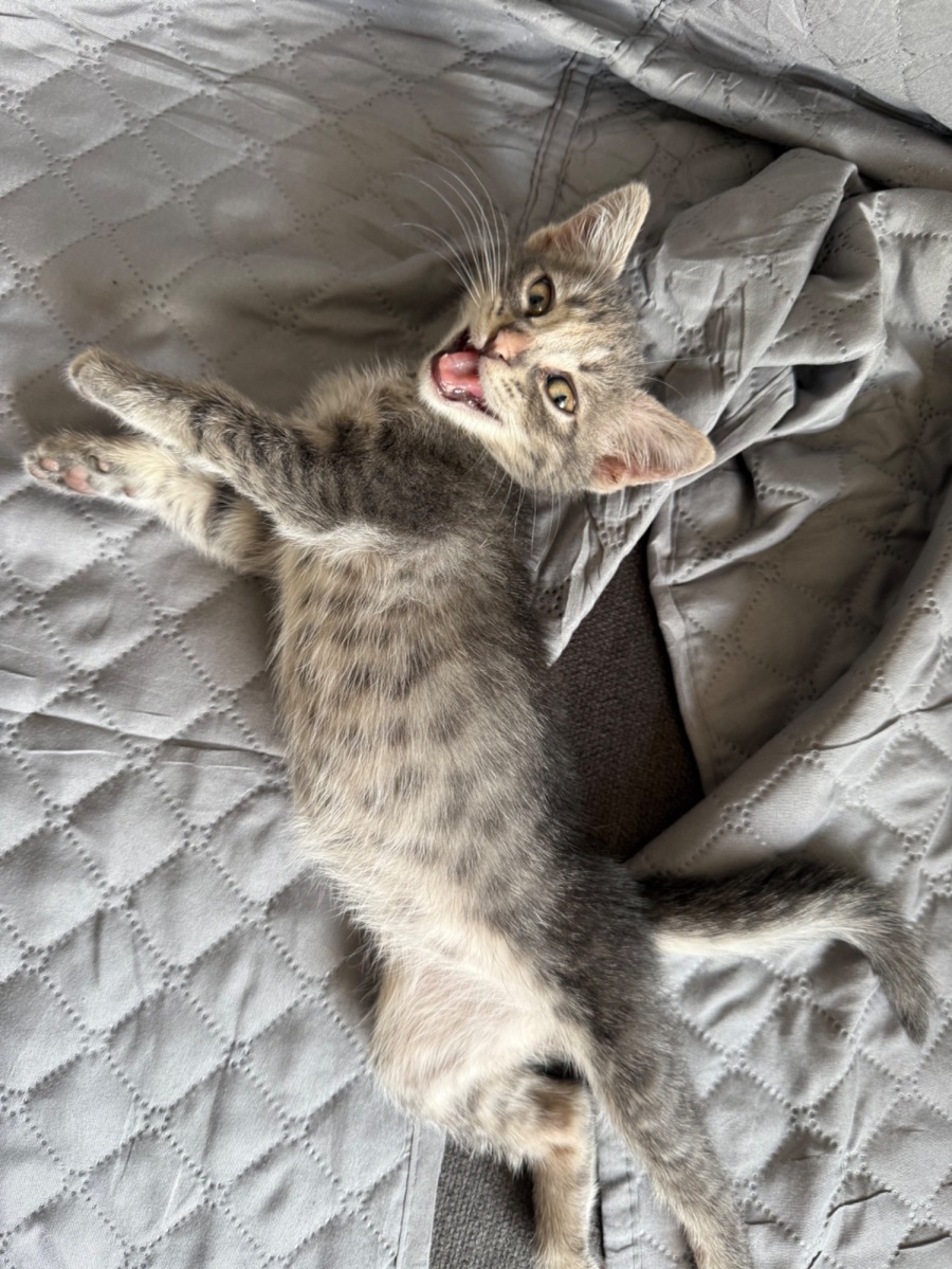 Say hello to Holly, a gorgeous grey tabby kitten who loves nothing more than to follow her human around, being a cheeky little girl, and purring like a little motor mouth. Little miss Holly is as independent as she is affectionate, and will turn anything into her little plaything.