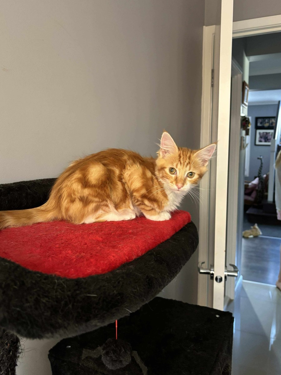 I love playing with cat toys of all sorts, as well as climbing on the scratching post.