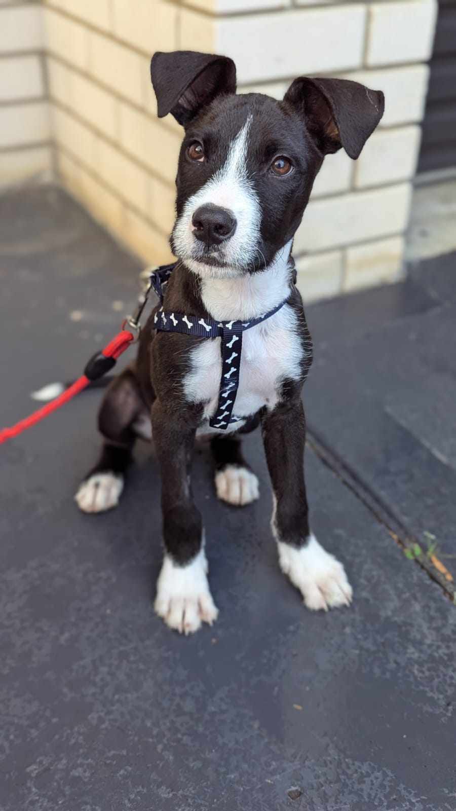 Zip is an extremely lucky girl as we rescued her from a rural NSW pound. She has come along in leaps and bounds in foster care and is really blossoming. Zip is social with other dogs and loves to make new doggie friends. She will play with anyone who will play with her. It would be ideal that her new owner has a network of family/friends with other suitable doggie playmates for her to socialise with and go on walks with. We expect Zip to grow to a larger medium size (22-25kg at a guess) and to have moderate energy levels. She will need a substantial daily walk and mental stimulation to keep her healthy and happy throughout her life.
