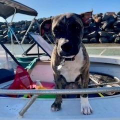 My favourite activities include playing endlessly with my foster dog brother, going for walks, and going to the beach. I really LOVE surfing, so I hope that my new family gets me a surfboard or has a SUP!