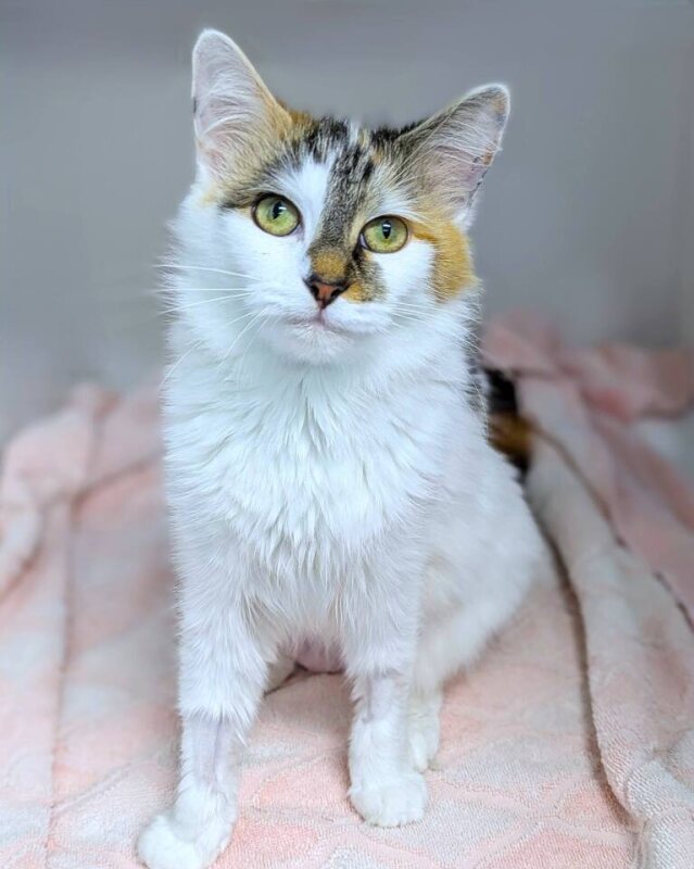 I'm a 1-year-old Domestic Medium Hair cat looking for my forever home. I'm a playful and active girl, but I'm not too intense, I promise! Being a medium-energy gal, I love a good balance of playtime and relaxation. I have a soft spot for humans who have had a cat before and who will understand when I need my space. My perfect family would be those with members aged 6 years and above, as sometimes I can be a little bit weary with loud noises. You see, I'm a bit of a diva and I like all the attention on me, so I'm not really suited for a home with other cats. I promise I'll give you all the love you need in return though. Ideally my future family will understand my need for both fun and downtime, and they'd have the patience and love I need. I promise once I get to know you I'm the sweetest girl in the world and will love to curl up on the couch with you. If you think you could be my perfect match, I can't wait to meet you!