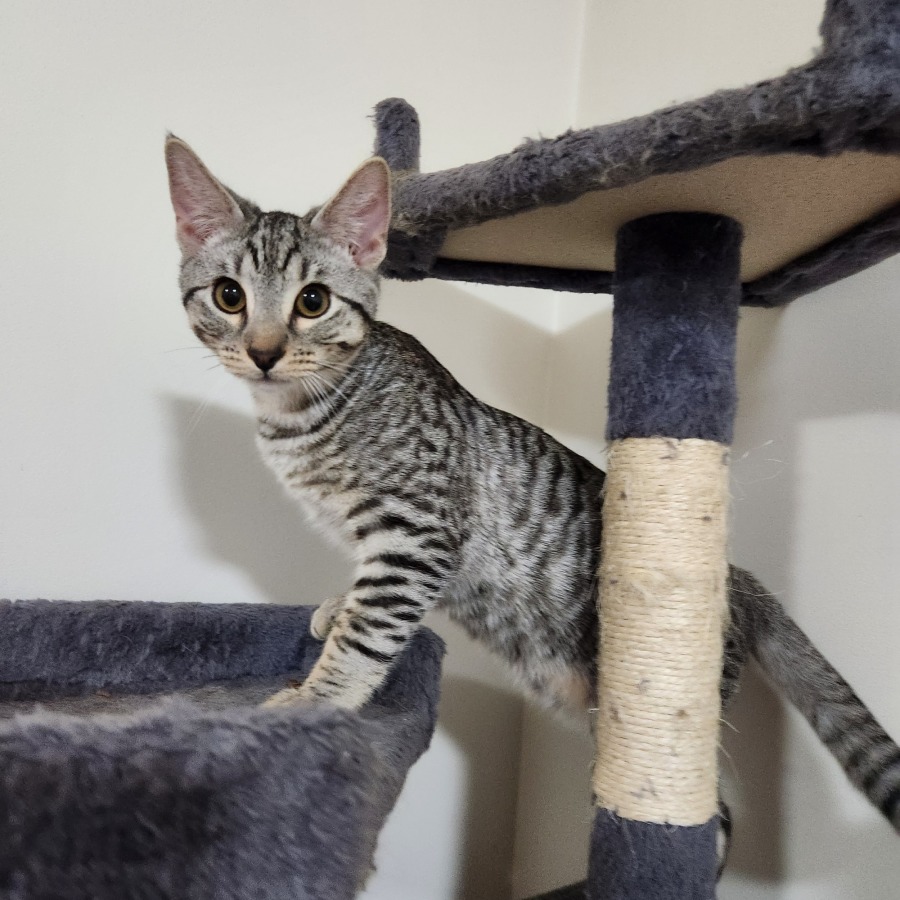 Meet Jay, a charming silver tabby kitten with energy for days and a heart full of love! This lively little feline is always on the move, ready to turn any moment into playtime. With his plush silver coat and striking markings, Jay is a bundle of feline joy who’s bound to win your heart instantly.