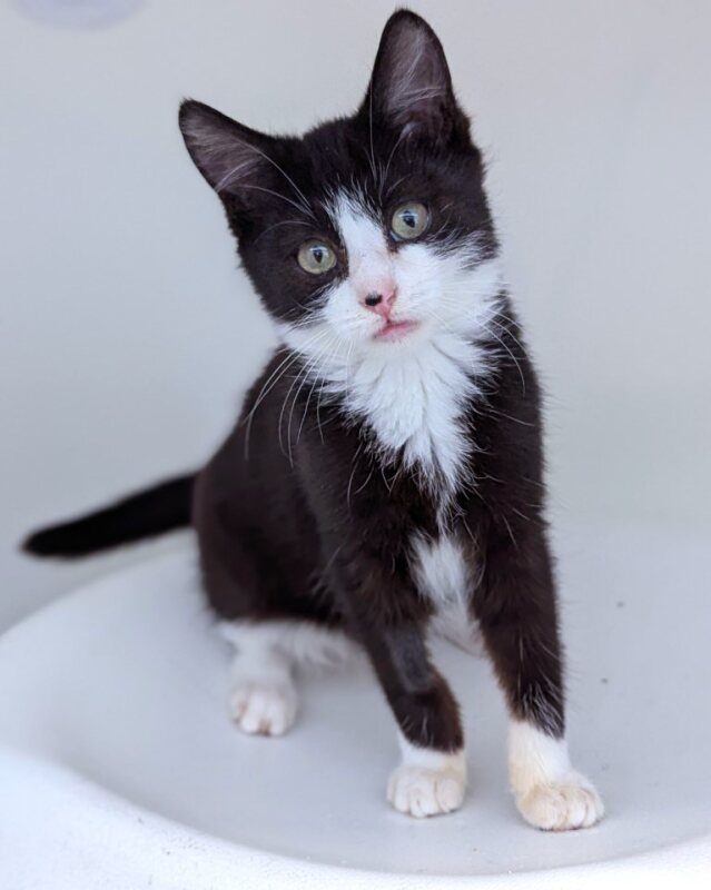 I'm Beethoven, a dapper little Domestic Short Hair kitten. At just 3 months old, I'm full of energy and love to play, but I also enjoy my quiet moments. I can be just as content with a good nap as I am with a fun game.