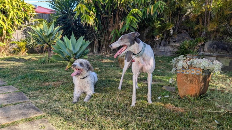 Flowers gets along well with other greyhounds and enjoys the company of her foster sister. She’s already settled into her new foster home and routine with ease, bringing a perfect balance of excitement and calm to her surroundings.
