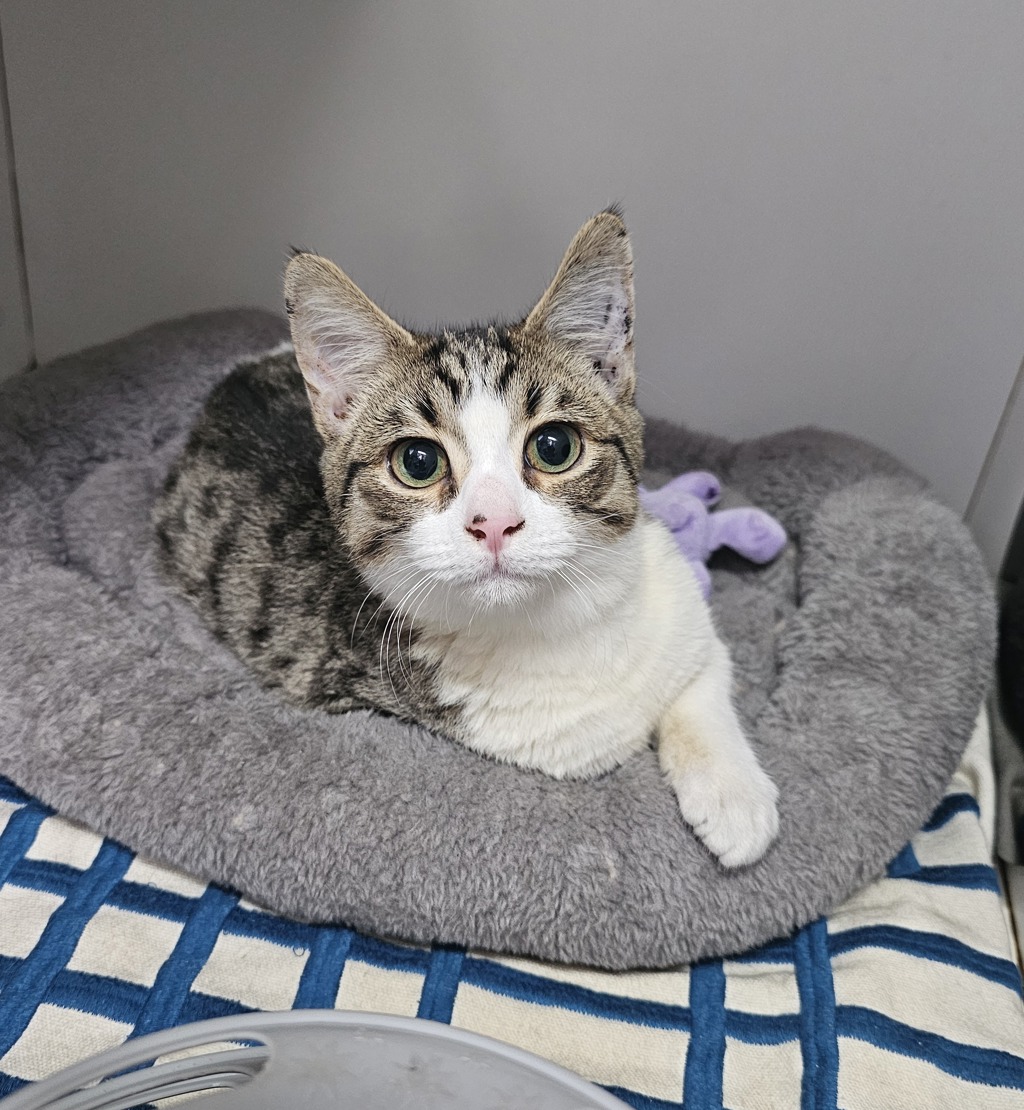 Hey there, I'm Tuesday. I'm a friendly and affectionate kitten who would suit most homes! My playful paws are always ready to pounce on anything that moves. I love playing with wand toys and mysterious shadows on the wall! When I'm finished playing, I love nothing more than finding a warm lap to curl up in.