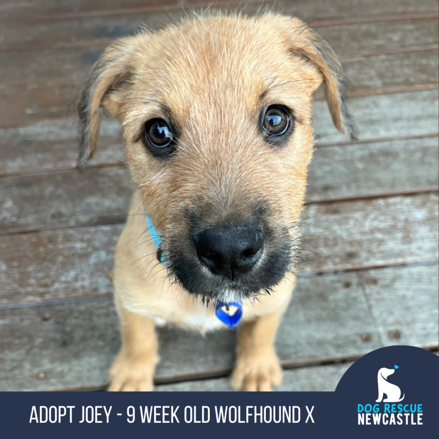 Say hello to Joey, a 9-week-old Wolfhound x, with a heart as big as his future paws! This sweet boy is a blend of playful energy and irresistible puppy cuddles. The moment you scoop him up, he wraps those oversized paws around you and melts right into your arms—it’s love at first snuggle.