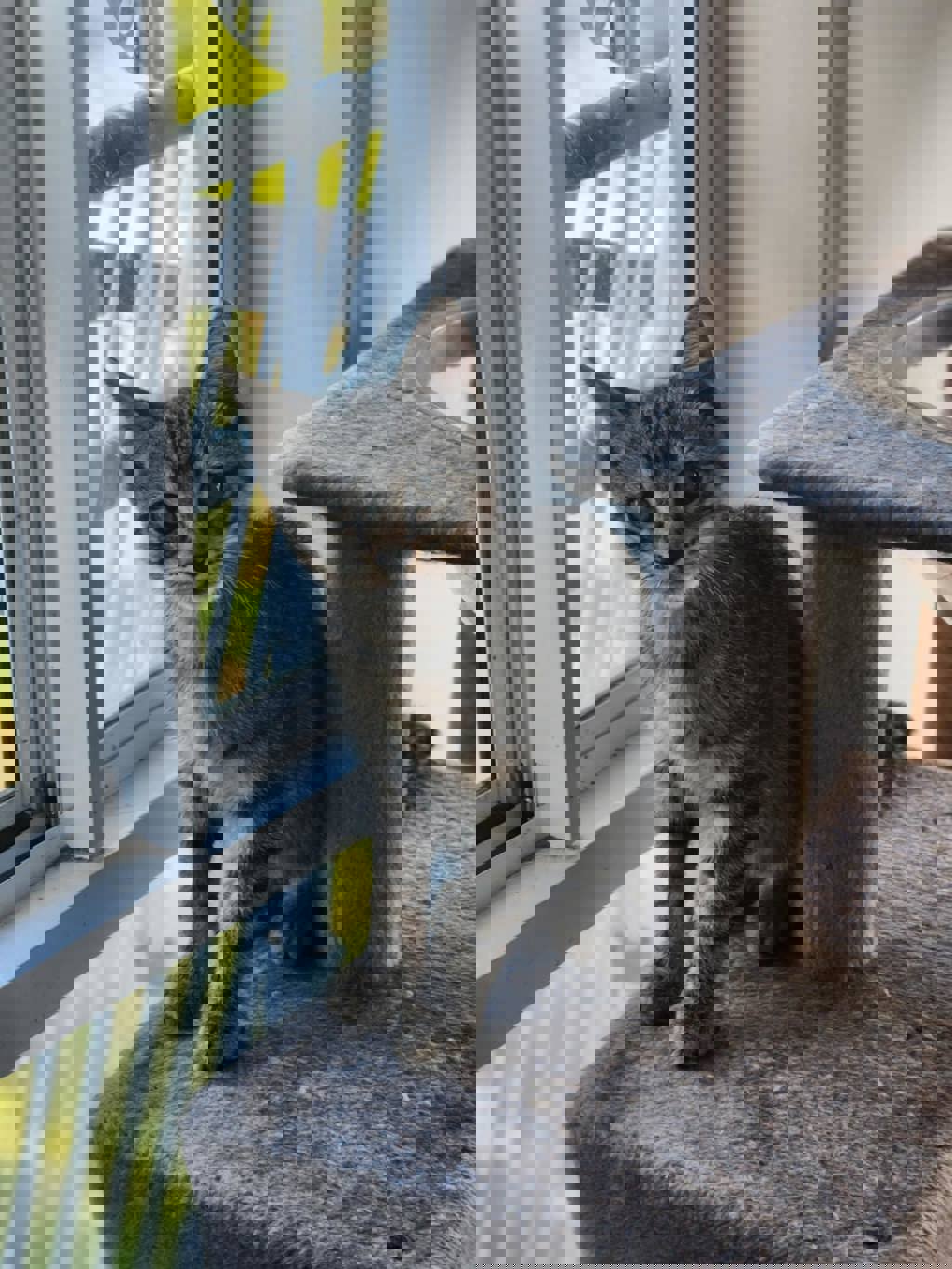 I have perfected the art of the irresistible purr. It's like my secret weapon for getting all the cuddles and chin scratches I could ever want. Life's just one big, exciting string of moments, and I'm here to make every second count - whether I'm chasing my tail or sharing some purr-fectly quiet time with my favourite humans. So, if you're up for a bundle of furry fun and a lifetime of companionship, please consider adopting me!