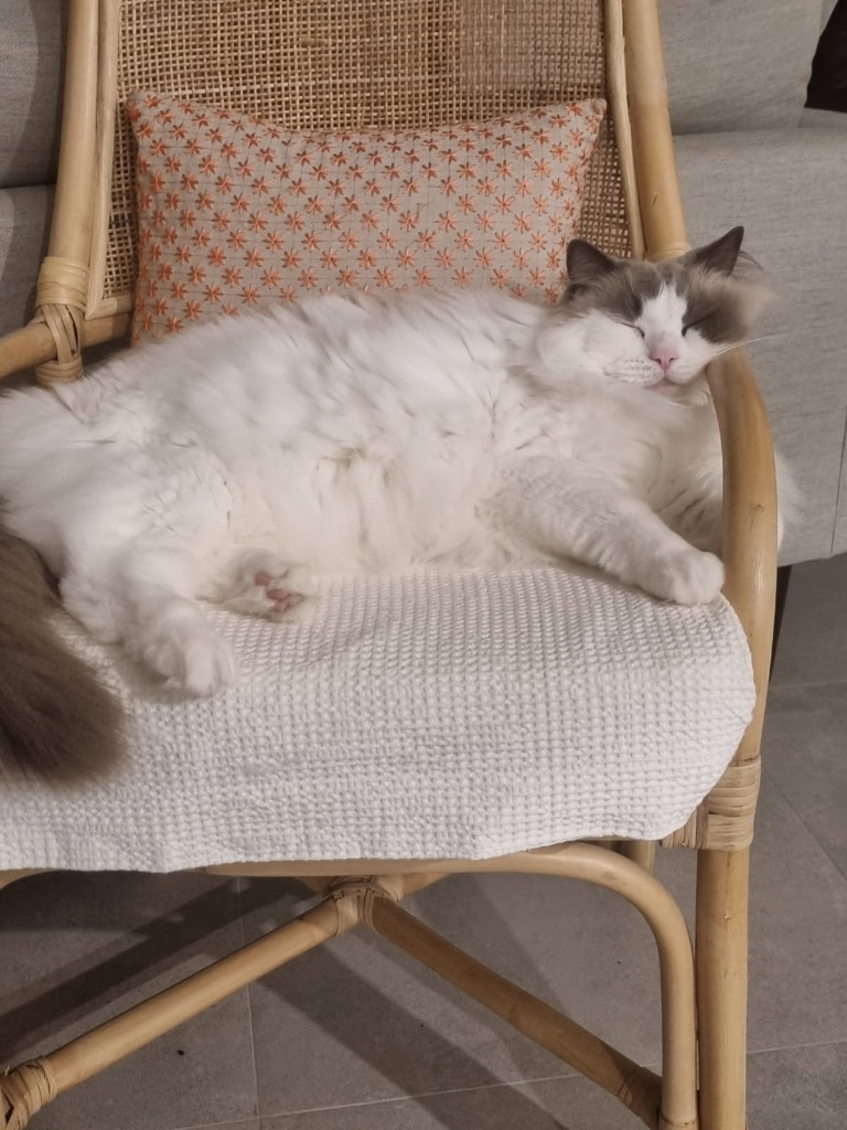 FAVOURITE THINGS: Opal is an older girl so spends a lot of the day sleeping, although she does enjoy running through her cat tunnel when she’s feeling energetic and playing with her dangly toys. She also likes to chase balls around the living room. She’s happy to curl up at the foot of your bed to sleep and isn’t a fan of being picked up.