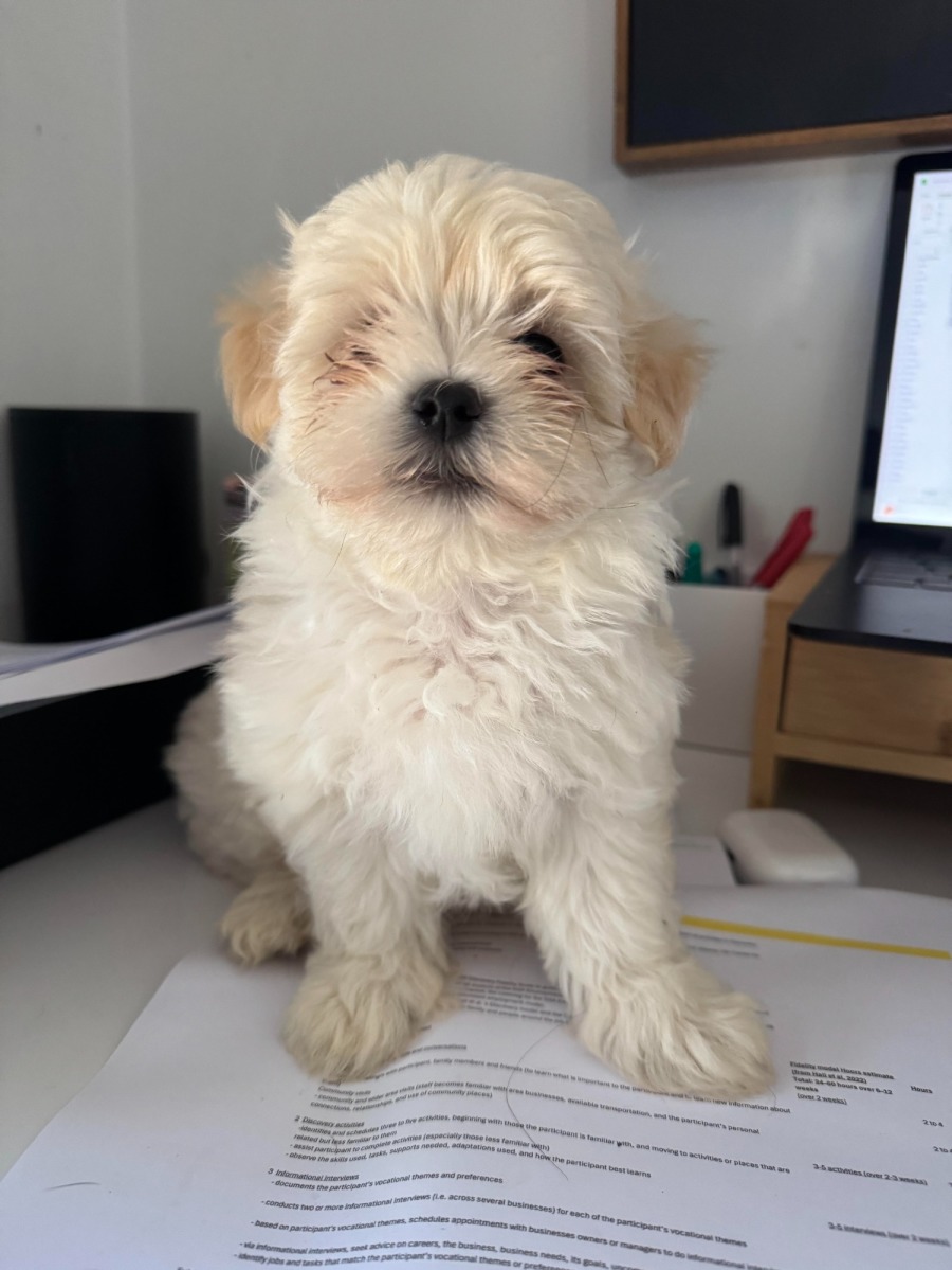 Theo is a fun loving, affectionate and adorable Maltese cross Bishoodle. Theo is almost 12 weeks old and was born on 4th February. Theo absolutely loves to greet his humans when they come in the room with kisses and cuddles. Theo loves to play, he loves his chicken and duck toy and loves his adopted sister Peanut a little mini Dachshund (whom is also up for adoption at Waggy tails)