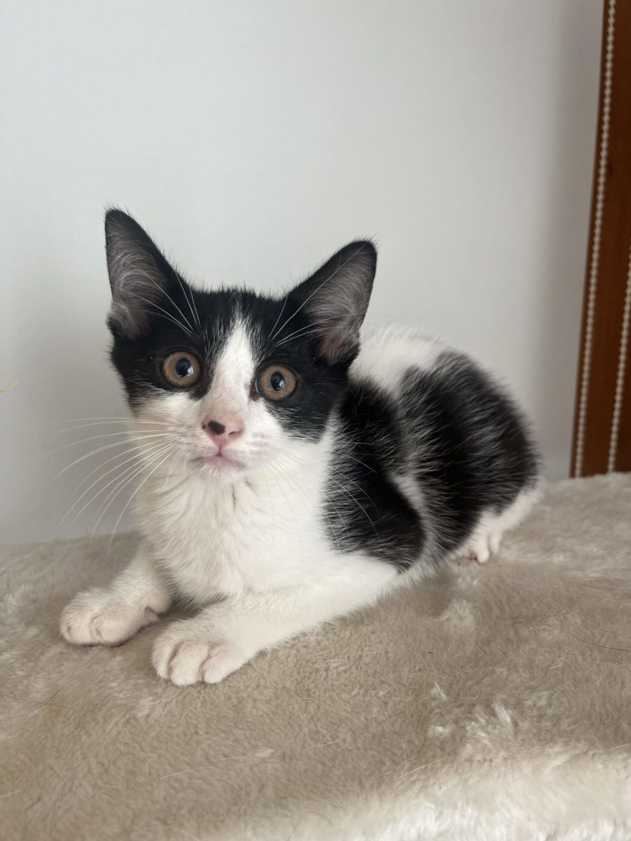 Macchiato would love to be rehomed with another cat or kitten as he loves to play and snuggle with other cats. He is gentle and confident so would be a great fit for a family. Macchiato hasn't been tested with dogs, but as he is a kitten, should be fine after an appropriate introduction.