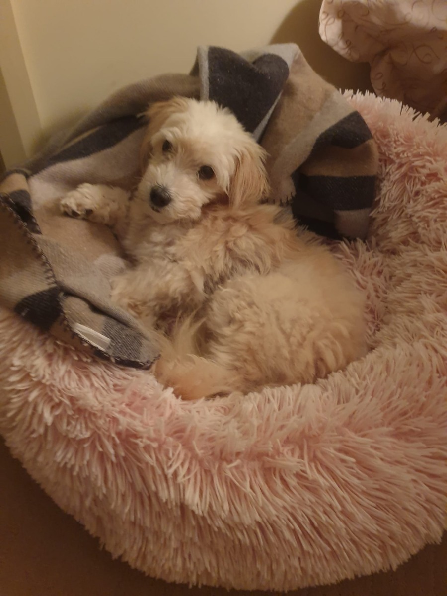 Simba loves to play and cuddle. He sleeps soundly beside his carer's bed and walks well on lead. He does not bark if next door's dog barks and runs up and down the other side of the fence.