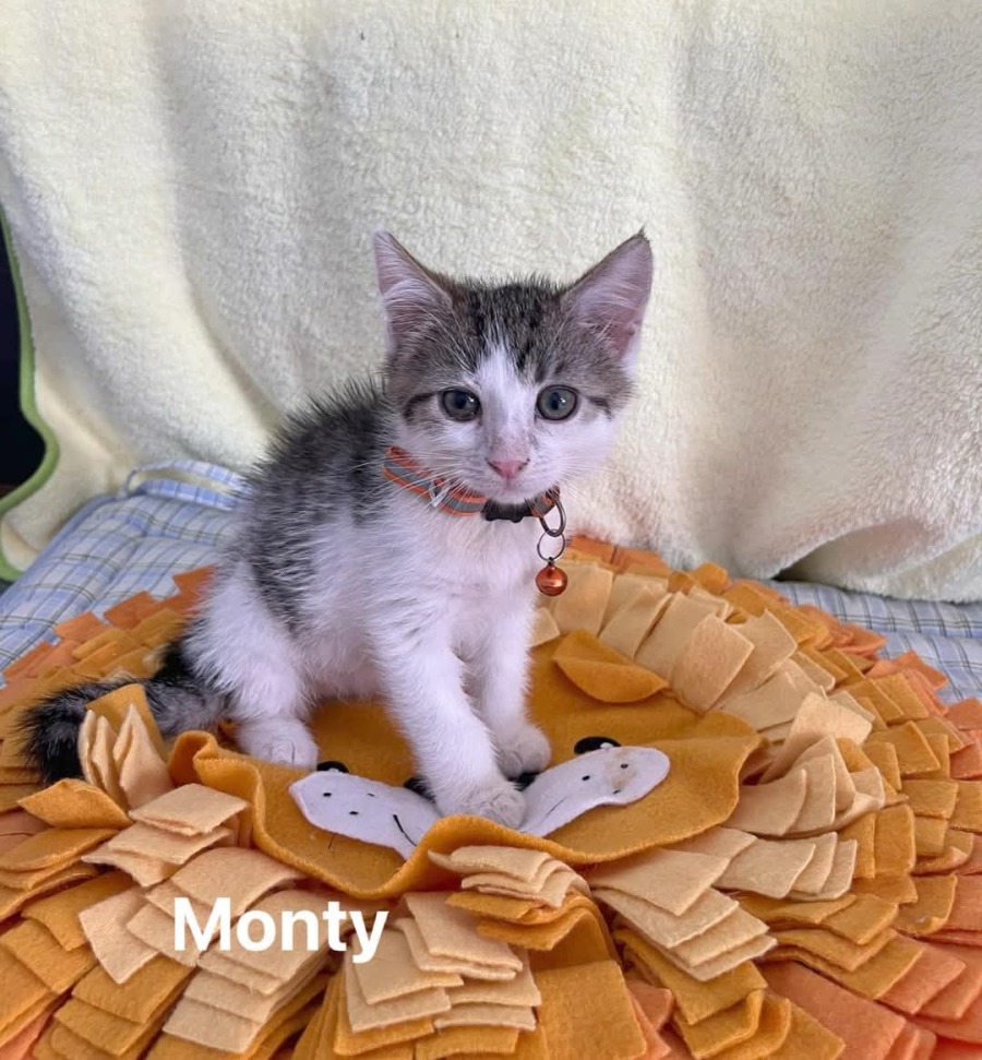 Monty – A beautiful, confident little boy. Already proving to be a lap cat who enjoys sitting with his person. He is super friendly and loves to explore new surrounds. He is full of energy and loves to play with his mates, his toys and his person.