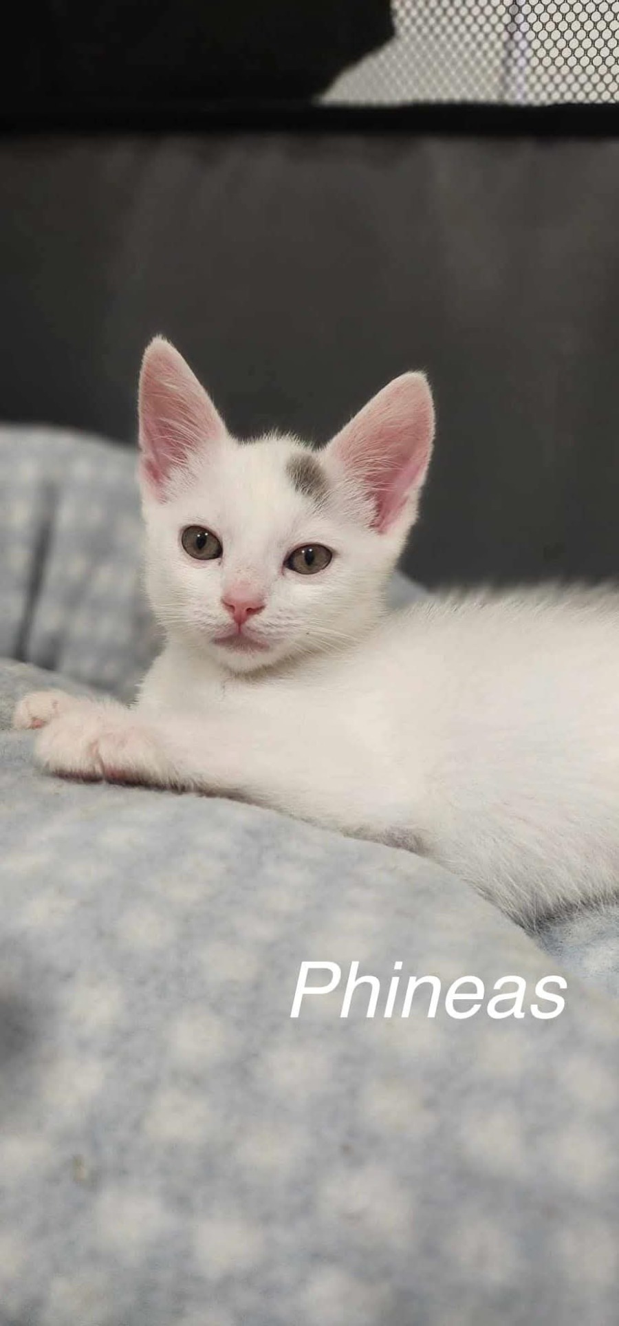 Phineas: The Queen of Play! This dazzling white beauty, sporting a sassy striped tail, can out-play any of her brothers. Don't underestimate her sweetness; she's a powerhouse of charm!