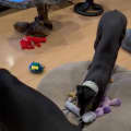 Chloe is a gentle, happy girl who would love a home with a backyard to stretch her legs and play with her beloved toys. While she could live as a solo dog, she'd need plenty of mental stimulation if left alone full-time, as she’s an intelligent girl who likes to stay busy!