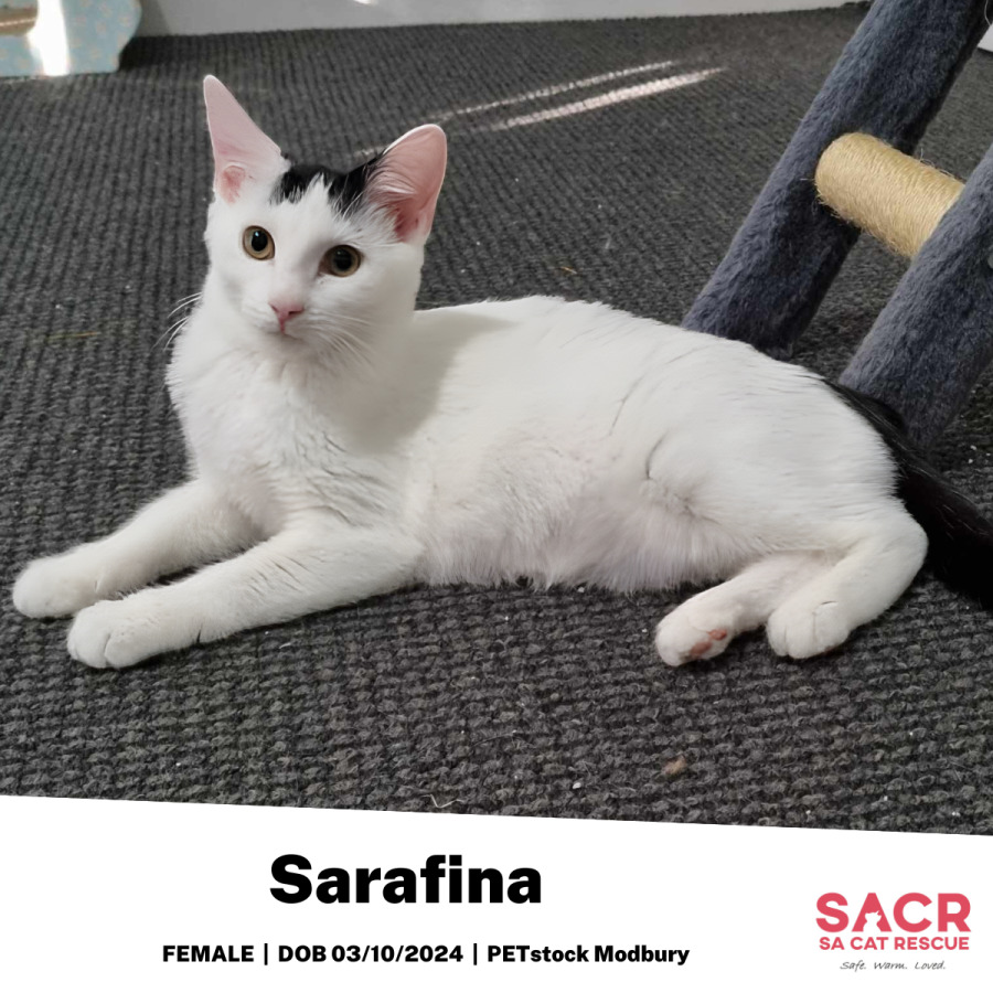 If you’re after a sweet, playful companion with a curious streak and a big purring heart, Sarafina might just be your perfect match.