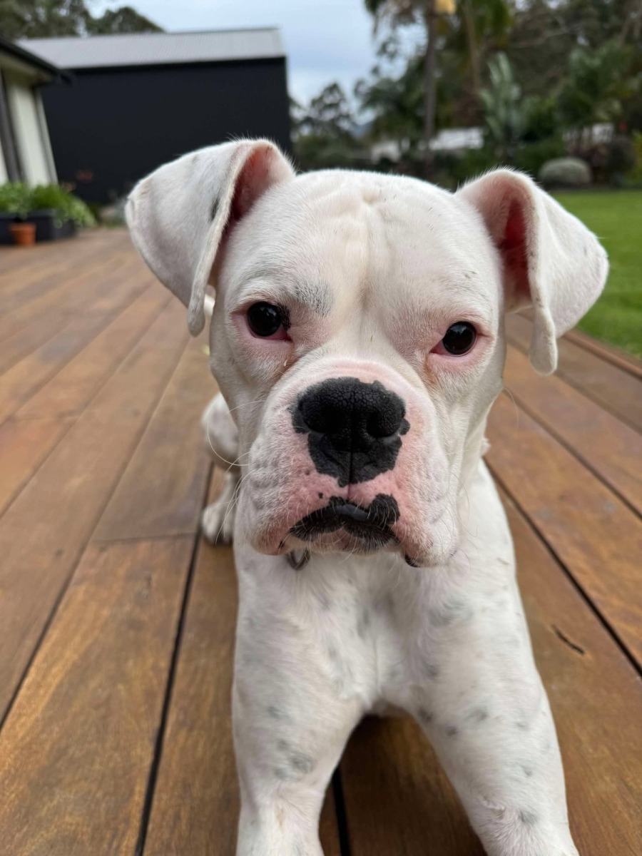 He walks well on lead in calm areas, but new sights and smells are still very exciting. Around other dogs or people, he often does his signature βdrop and launchβ β a classic Boxer mix of curiosity and joy.