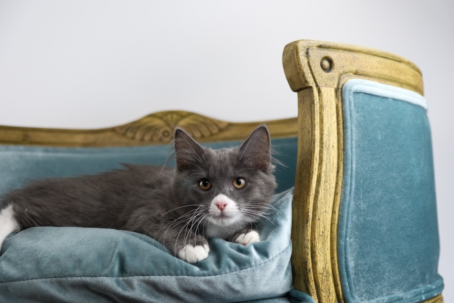 Minky is a delicate and beautiful young kitten with a soft blue-and-white coat and a charming white patch on her nose. Her gentle nature makes her a quiet presence in her surroundings, observing the world with cautious curiosity.