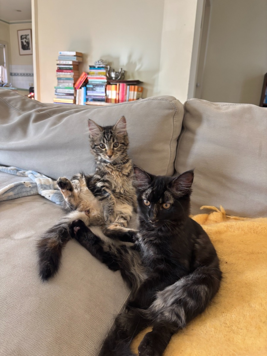 Kiko, the more cautious and reserved of the two, loves to follow Stormy’s lead. Often called the prettiest girl in the household, she was initially called Crybaby, but that name quickly didn’t suit her gentle, loving personality. She’s a cuddle queen, always ready to jump into bed for a snuggle, especially after a busy day of zoomies around the house. While she might be a little more shy than her brother, Kiko’s beauty and sweetness always shine through.