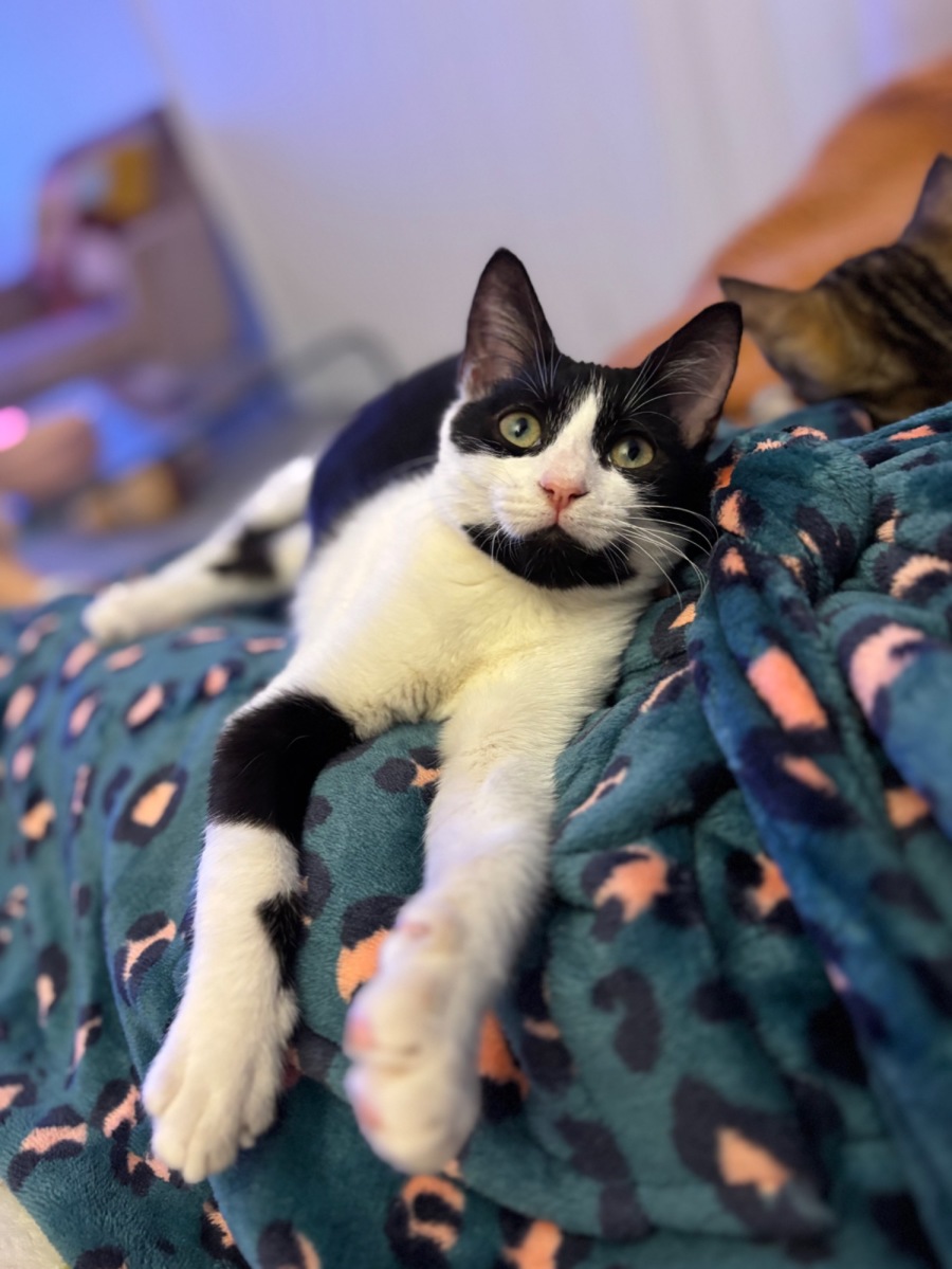 Despite a challenging start to life, Pickle has bounced back beautifully, demonstrating resilience and a zest for life. He was discovered by one of our nurses whilst walking her dogs. He was alone, with fractures in his back legs and battling an ear infection. Through diligent care and his own determination, he's transformed into a happy, playful kitten who loves nothing more than running around and spreading his joy.