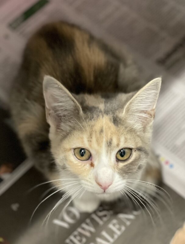Hello, my name is Mimi! I'm an adorable 4-month old female kitten with a heart full of love to give. My fur is as soft as silk, thanks to my Domestic Short Hair genes. I'm still learning about this big world around me, but wow, it's full of exciting things! I'm a little ball of energy who loves to play. My favorite game is chase-the-string, but I also enjoy exploring new places and playing hide-and-seek. I can keep myself entertained, but I'd love to share my adventures with you. I'm also a huge fan of cuddles. In the midst of my adventurous exploits, I like to slow down, curl up in a cozy lap, and purr to my heart's content. I'm really good at giving head bumps and making people smile. I'm looking for a forever home where I can grow, play, and love. Are you ready to add a little more fun, a little more curiosity, and a whole lot of love to your life? If so, I can't wait to meet you!