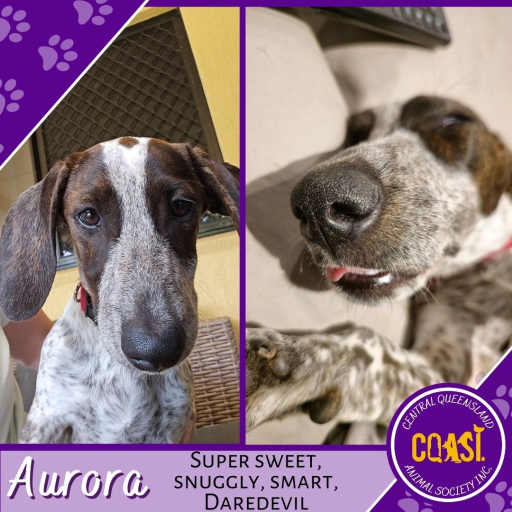 Hey! My name is Aurora and I am 6 months old. My foster mum has a couple of much bigger than me doggies but that doesn't stop me and I still play and run around with them but also snuggle in for snoozes.