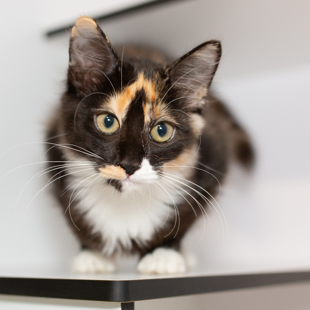 Introducing Karlee - a stunning little kitten whose beauty is matched only by her sweet and gentle nature. With her captivating eyes and graceful demeanor, Karlee is sure to steal your heart. She enjoys quiet playtime, gentle pets, and the warmth of a cozy lap. Karlee is looking for a loving home where she can share her affection and bring joy to her new family. If you're ready to welcome this beautiful soul into your life, Karlee is waiting to meet you.