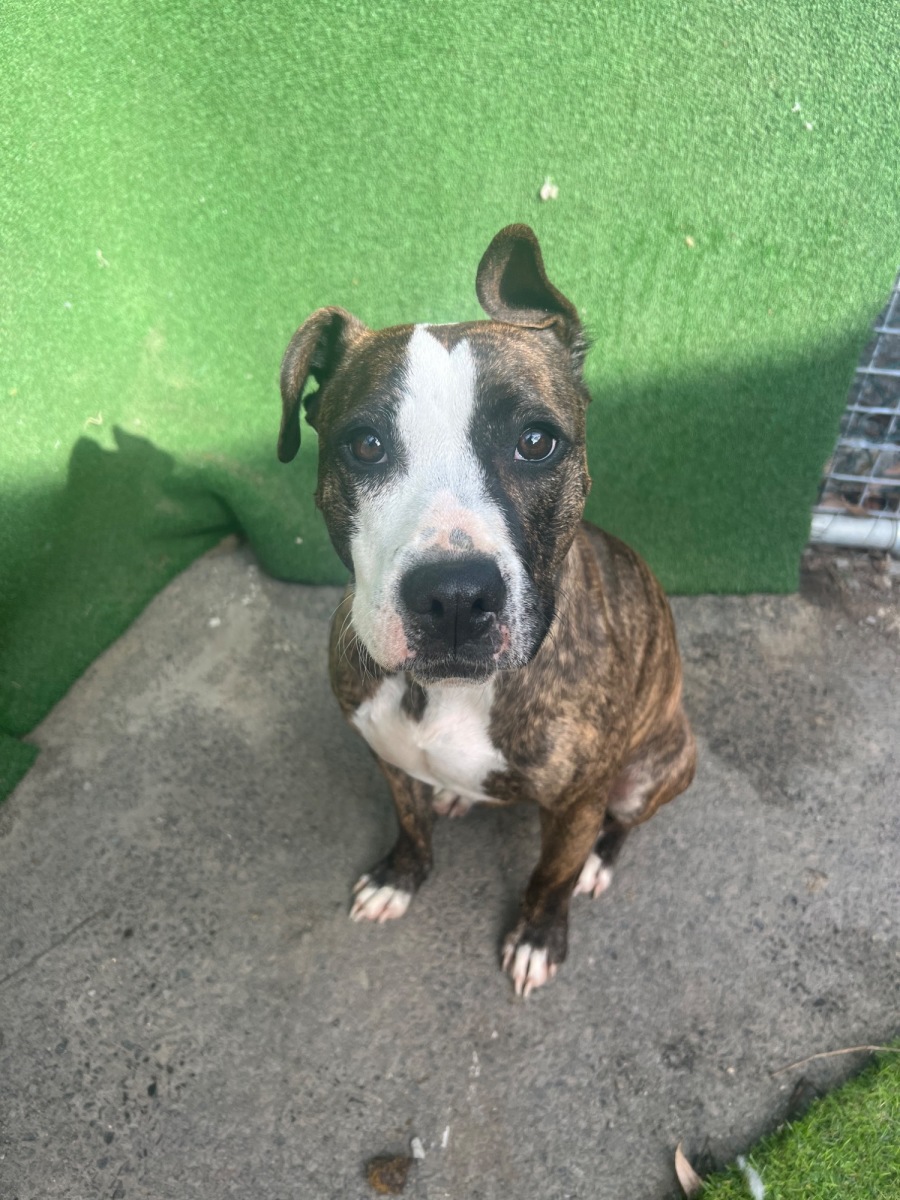 Meet Luna, a 2-year-old Staffy mix with endless potential and a gentle soul. Though she's currently a bit timid at the shelter, we're confident that her true sweet and loving nature will fully blossom in a welcoming, supportive environment. Luna is one of those special pups who, once she feels safe and secure, reveals her affectionate and delightful personality in the most heartwarming ways.