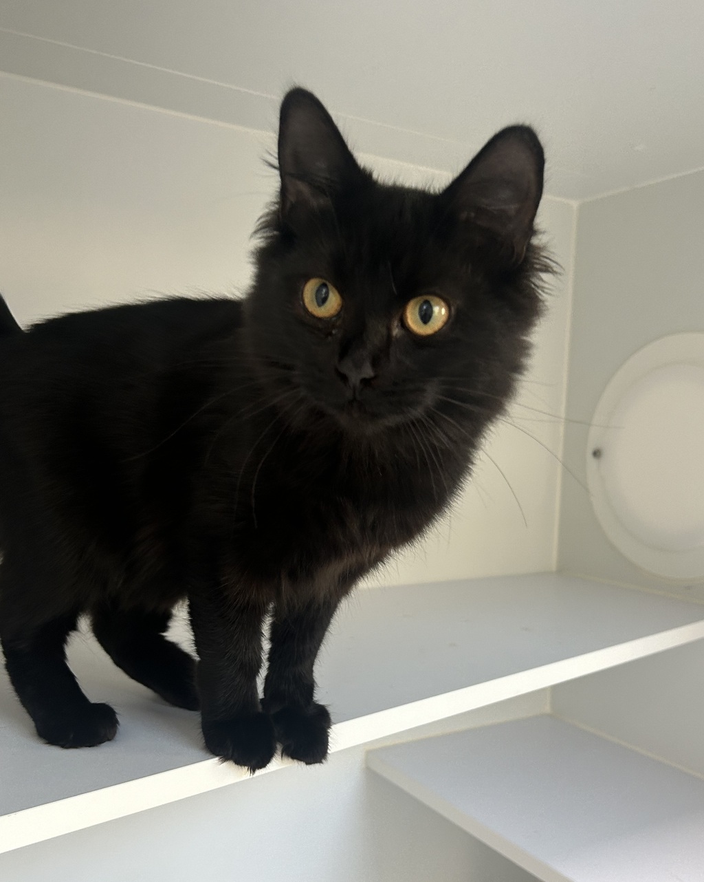 Posie is a gorgeous black cat with a gentle soul. She starts off shy, but with a little patience and kindness, she'll slowly open up-and when she does, you'll see just how sweet and loving she truly is. Posie enjoys quiet company, cozy napping spots, and the simple joy of feeling safe and loved.
