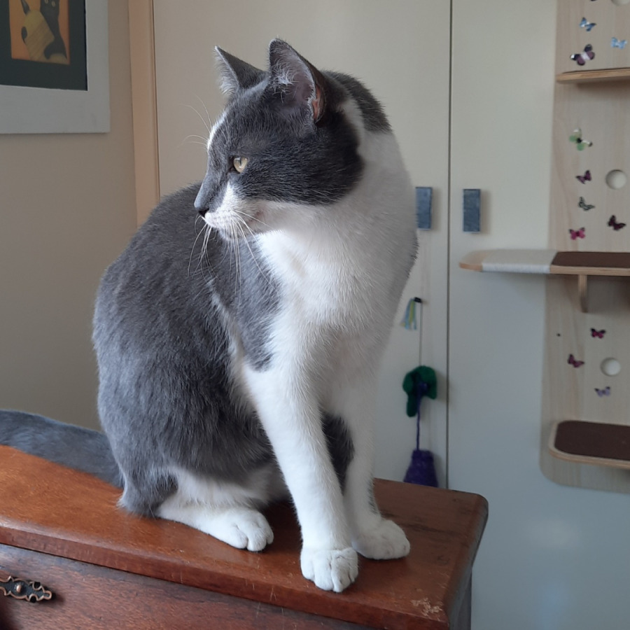 I’m calm and gentle with the people I know, often weaving around my foster carer’s legs at dinner time to say, “Cuddles please — and maybe a snack too!” New faces and loud noises can make me pause, but I’m growing braver each day and love gentle pats once I feel safe.