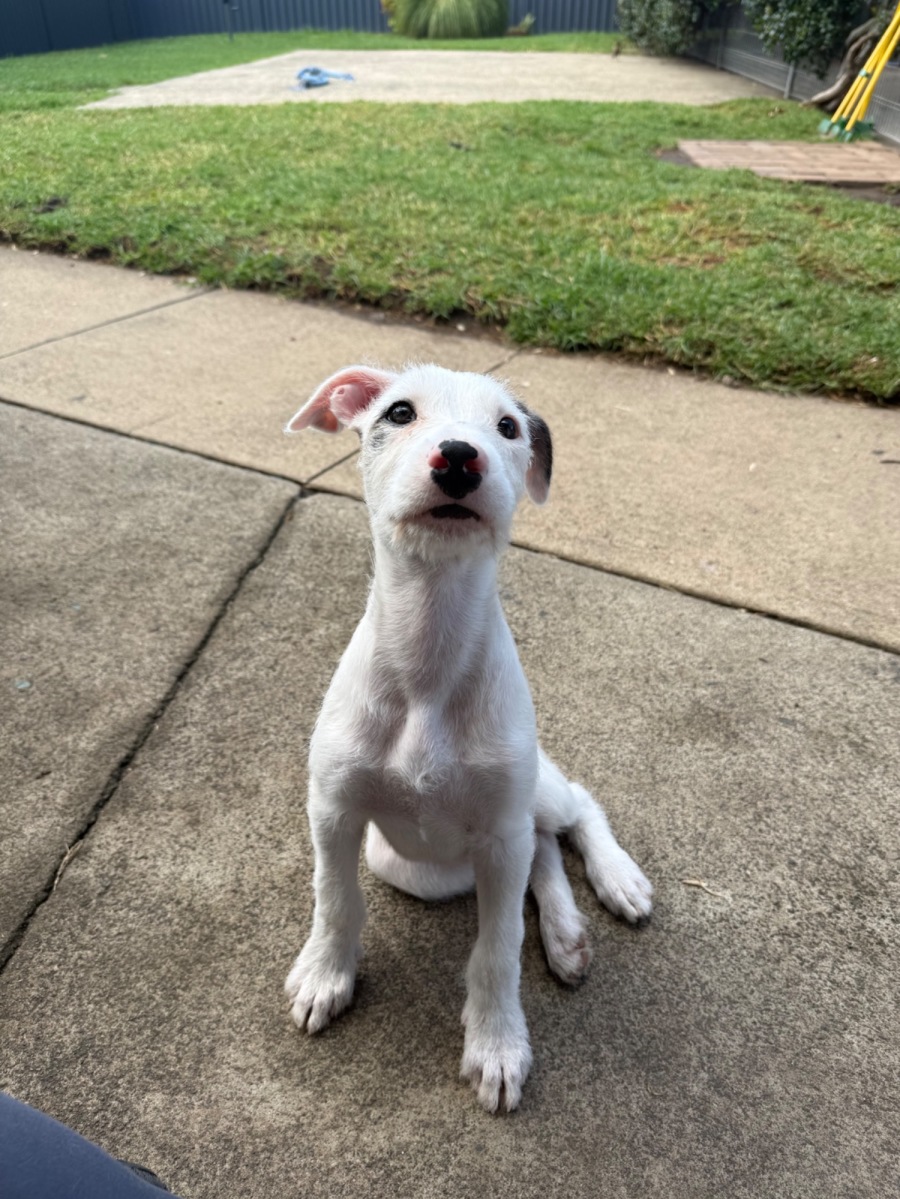 Meet Dolly, a bundle of energy wrapped up in a kind and goofy demeanor! With her gentle, patient, and affectionate nature, Dolly is a delightful companion who's bound to steal your heart. She's the perfect playmate for children and is comfortable around other family pets, lighting up any room she bounds into with her joyful spirit and wagging tail. However, it's important to note that Dolly may grow into quite a large dog, so supervision with smaller children is advised to avoid accidental tumbles.