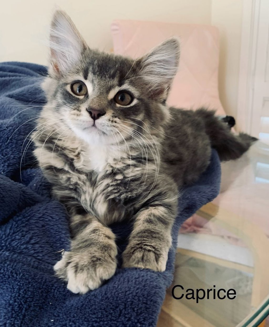 Whether you're looking for a playful sidekick or a snuggly nap buddy, Caprice has you covered. She's confident, affectionate, and full of kitten charm.