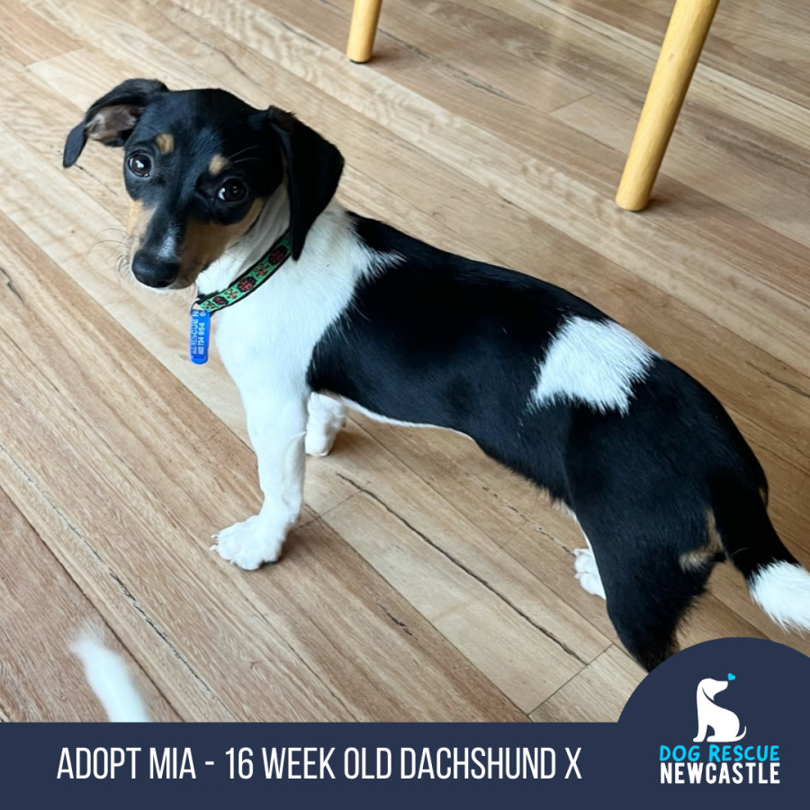 Mia is an 16 week old female, Dachshund X puppy. She is a very affectionate and loves to cuddle but also has an inquisitive, playful side. She has been raised in home environment with two other adult dogs and gets along well with them both.