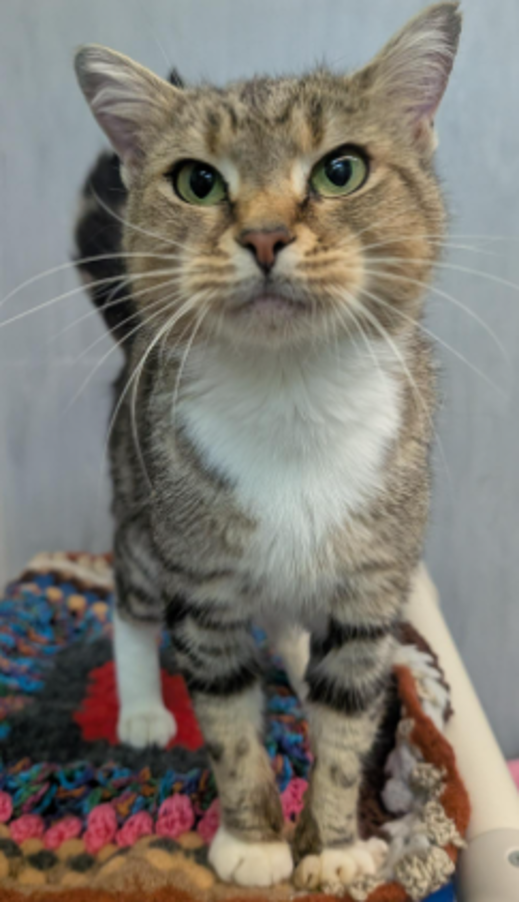 Meet Belieze, a charming 2-year-old female tabby with a miniature frame and a heart that's overflowing with personality!