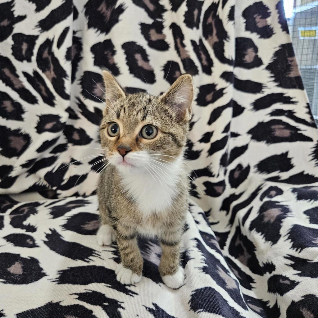Charming little Chomp! A super cute and super sweet lad looking for his forever home! Chomp can often be found running around and playing with his favorite toys, he can spend ages chasing and catching them all day! Chomp does have a cuddly and affectionate side; he enjoys a good pat and chin scratches whenever he can get them! If Chomp sounds like the perfect kitty for you, then give the shelter team a call today!