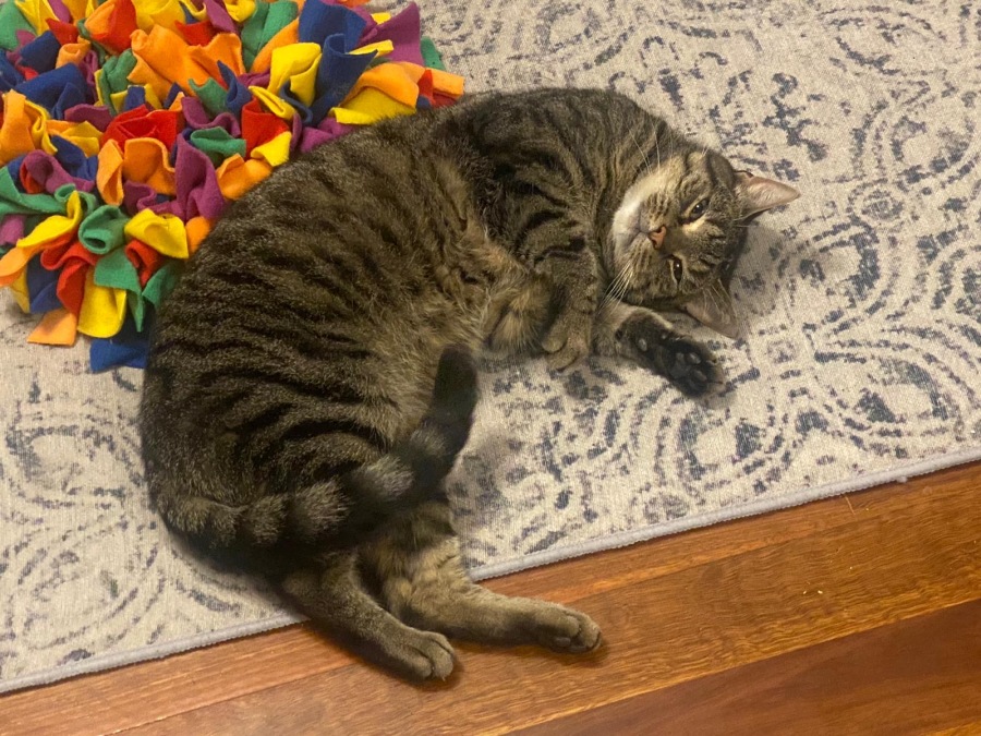 Tijo loves to play so if you're the type of person who likes to collect wand toys he will be your best friend in no time. He also has the most adorable breathy little meow and will jump up to grab treats out of your hand.