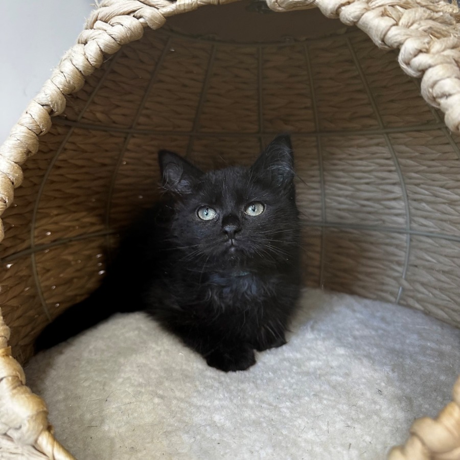 Introducing Juliett – a 2-month-old black kitten with a flair for the dramatic and a heart full of love. With her sleek coat and playful personality, Juliett is ready to steal the spotlight (and maybe a few treats) in her new home.