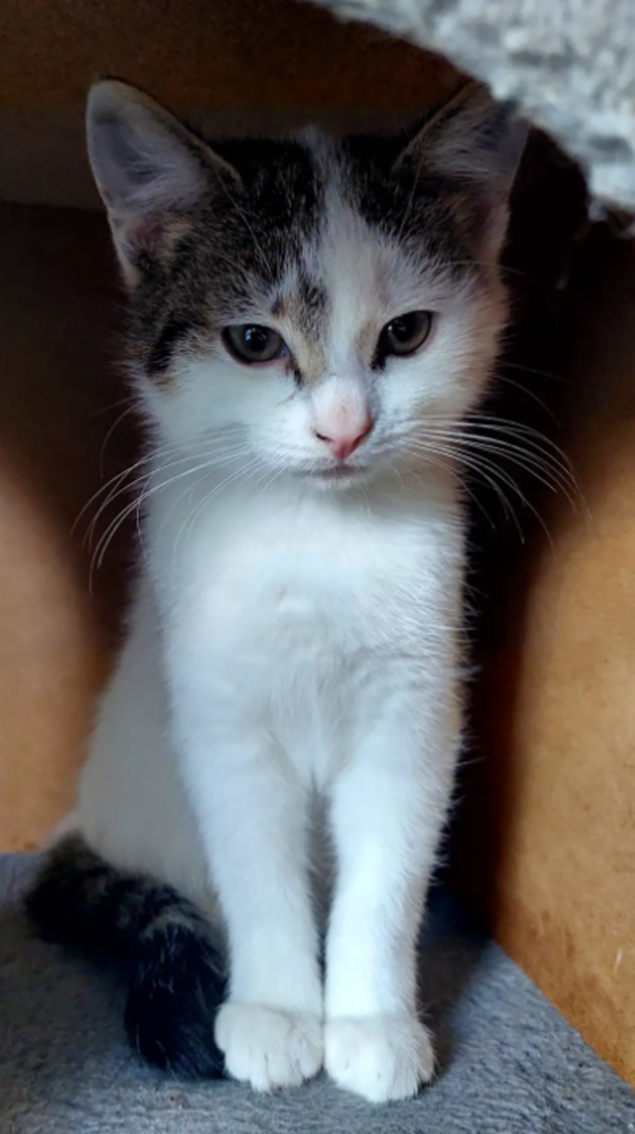 Due to Kimmie's young age, she’s looking for a home with another cat or one of her siblings, listed separately. She hasn’t met dogs yet, but may be okay with a calm, cat-friendly dog. She would also do well with respectful children aged 6 years and older.