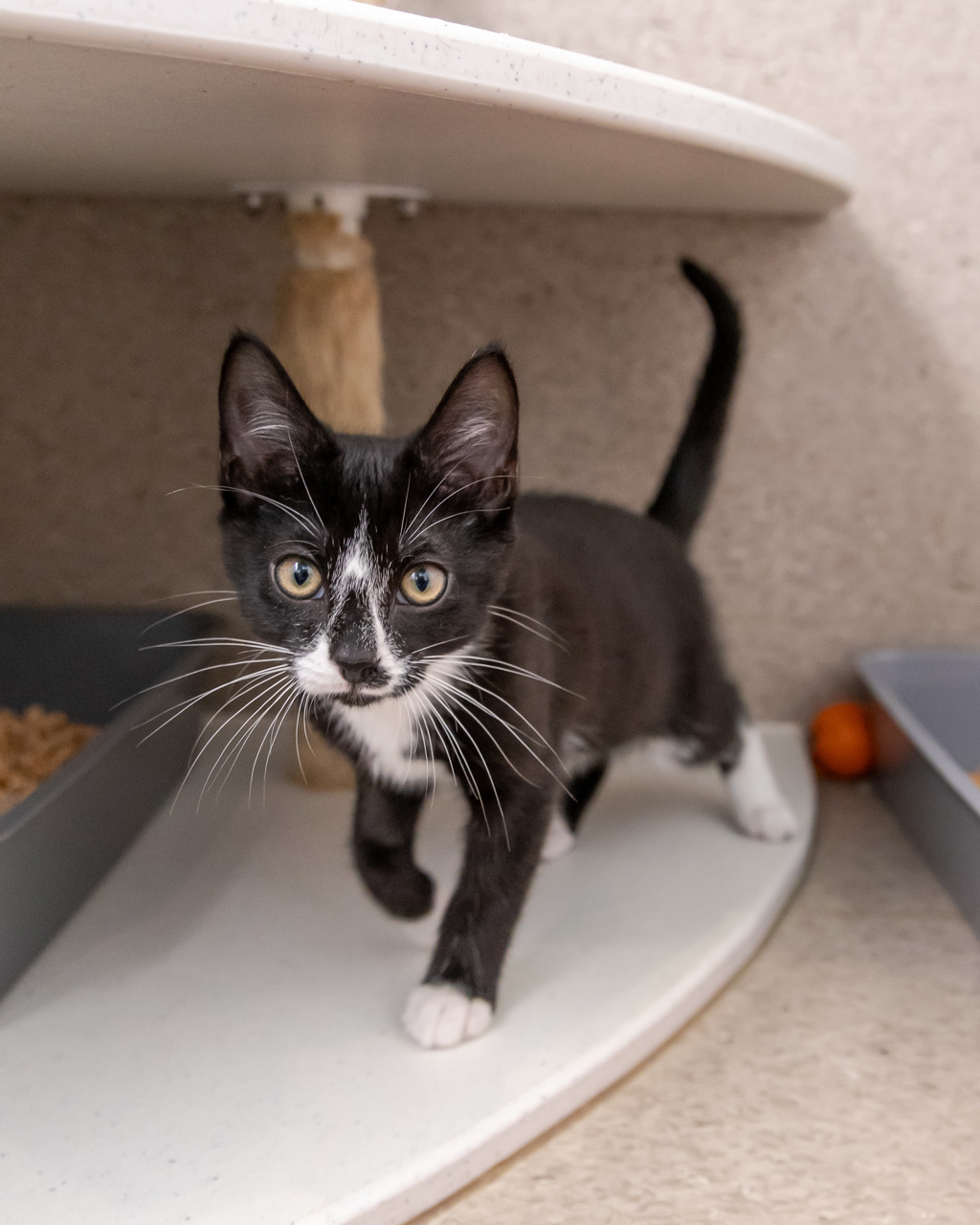 I have perfected the art of the irresistible purr. It's like my secret weapon for getting all the cuddles and chin scratches I could ever want. Life's just one big, exciting string of moments, and I'm here to make every second count - whether I'm chasing my tail or sharing some purr-fectly quiet time with my favourite humans. So, if you're up for a bundle of furry fun and a lifetime of companionship, please consider adopting me!