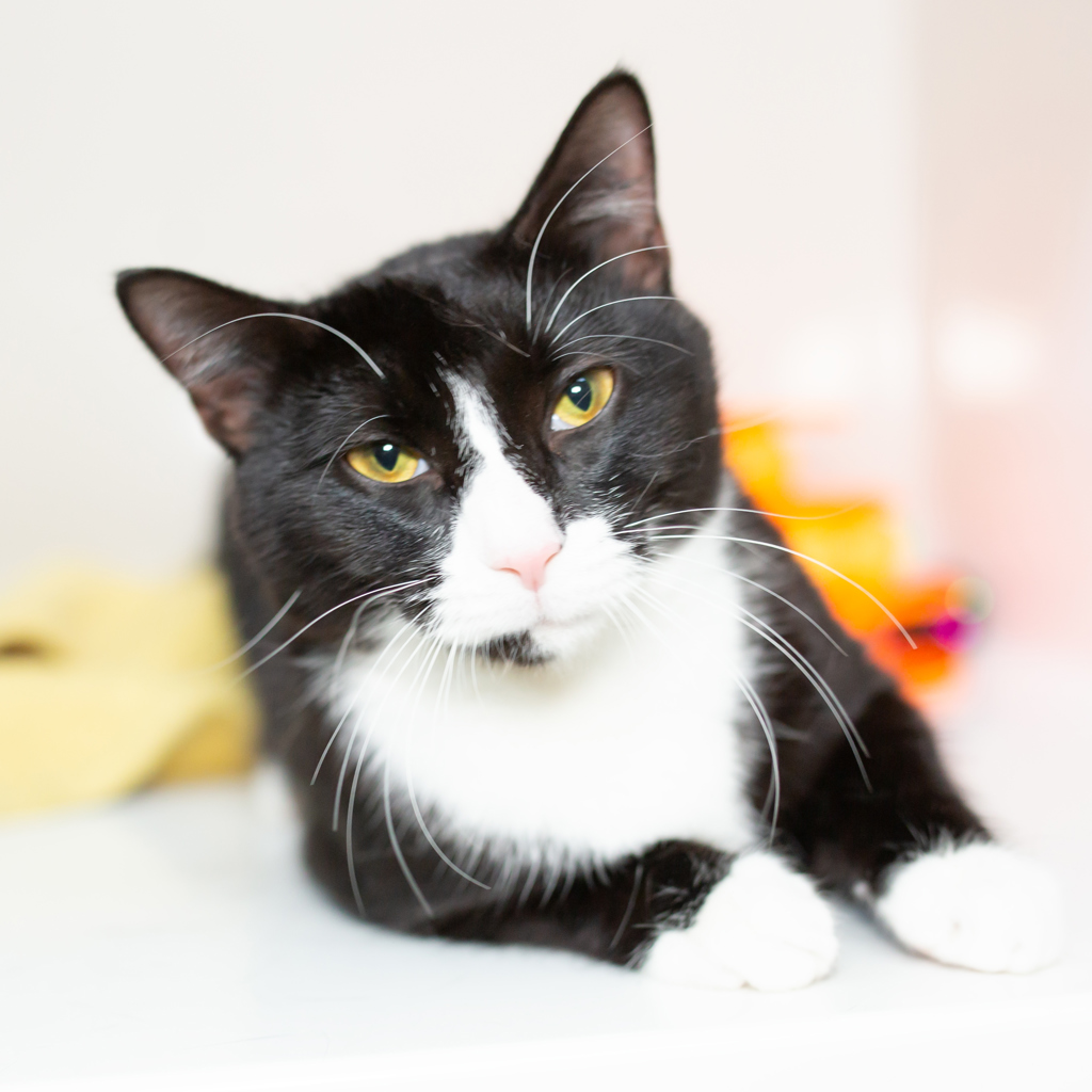 Stevie is a striking black and white gentleman with a big personality and an even bigger heart! This charming boy is friendly, affectionate, and always up for some quality cuddle time.