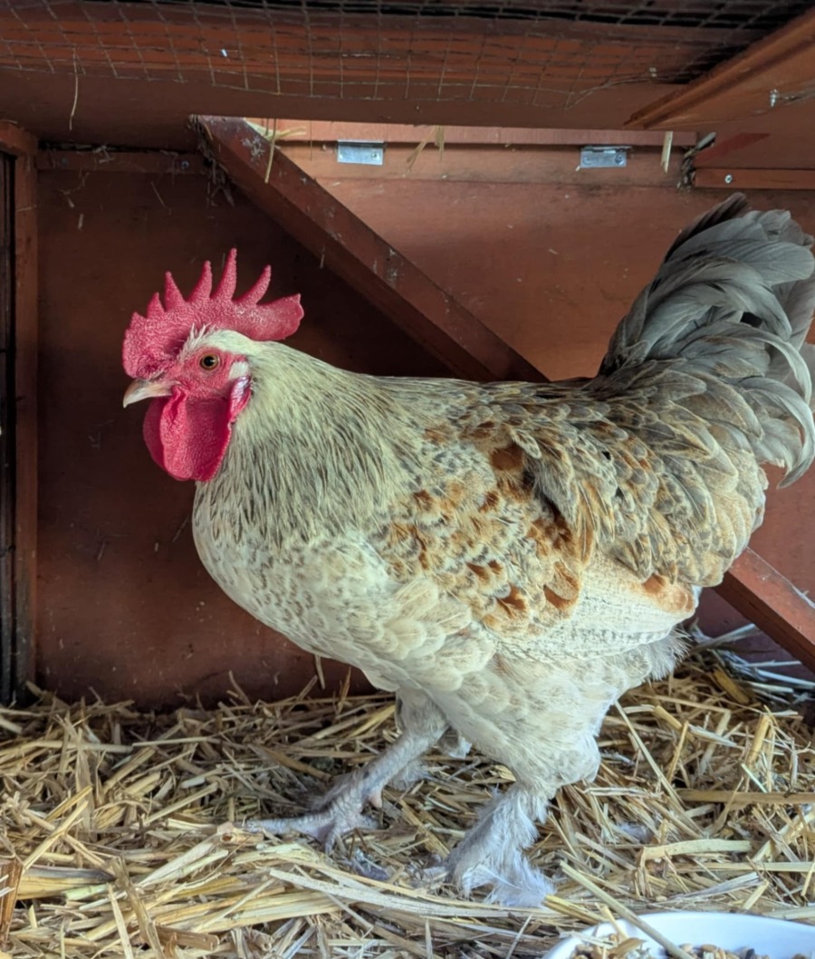 The Cluckinator hasn't had much interaction with humans since being at the facility as he likes to try to escape his coop while we clean. He has shown no signs of aggression towards staff or our resident rooster, however he isn't a big fan of being carried.