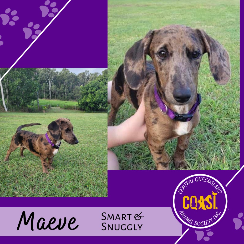 My name is Maeve (not Mauve - autocorrect failed me there). According to my foster mum I am a darling little ray of sunshine and everyone who meets me can't help but fall in love. I absolutely love playing with my foster brother and sister and making any new friends I can. I love to play with my toys and especially love chasing the ball! I am learning that chickens are friends and have good recall. My foster mum says I am excelling at crate training and happily sleep in my crate overnight and can walk on the lead now too - though sometimes I need a little bit of persuasion. I love love love extra long cuddles with my foster mum and do really well at training with some positive reinforcement. I am housetrained and ready for my furever home!MEET & GREET