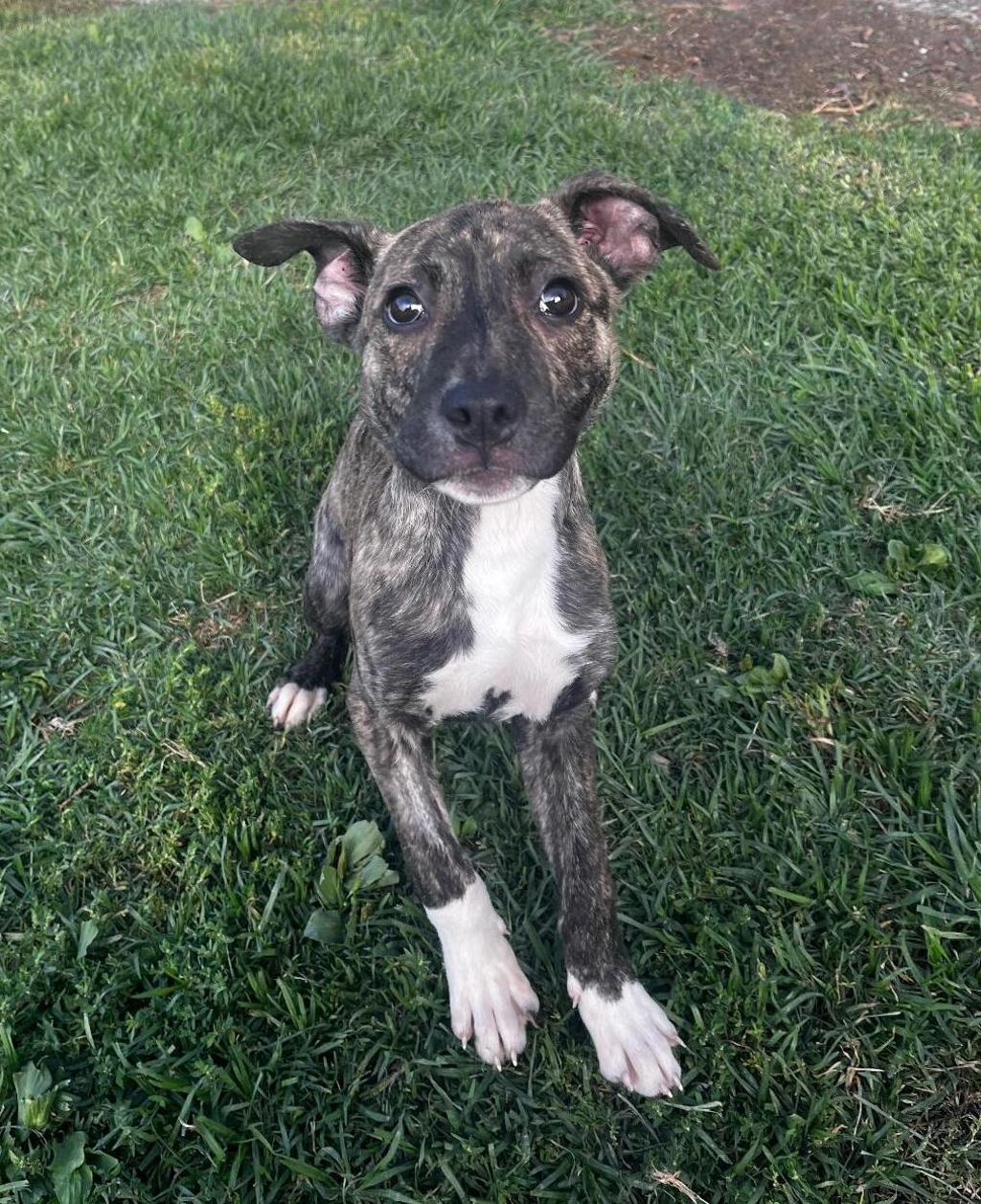 Mavis is a 3-month-old American Staffy x Bull Arab with a sweet and playful personality. She's a young pup who will grow into a larger breed dog, so she'll need a home that's ready for both her size and her big heart.