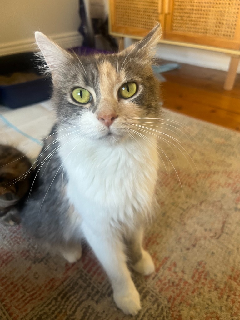 An angel in cat form, Marmalade thrives on affection and will be your loyal snuggle buddy. A true food lover, she enjoys a good snack almost as much as curling up close for cuddles. She’s getting used to living with other cats and dogs, and with slow introductions, she’ll settle in beautifully with other furry friends. Confident and friendly, she’s never shy around new people.