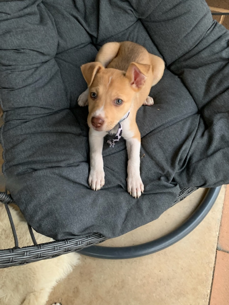 Shes a clever girl who's learning basic commands and has almost picked up toilet training.