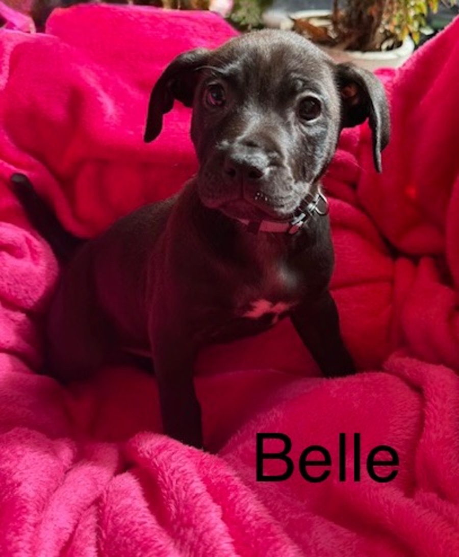 Darling little Belle is an 8 week old English Staffy mix who has found herself in Wally’s Doggie Rescue care along with her siblings.