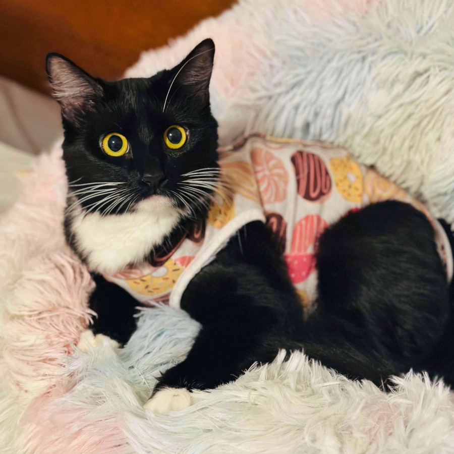 Juliet is a sensitive and soft-natured companion. She thrives on gentle affection and a peaceful environment. Her loving personality shines brightest when she has a calm routine and a trusted human to bond with. She’ll greet you with soft meows and gentle headbutts, always ready for a cuddle.
