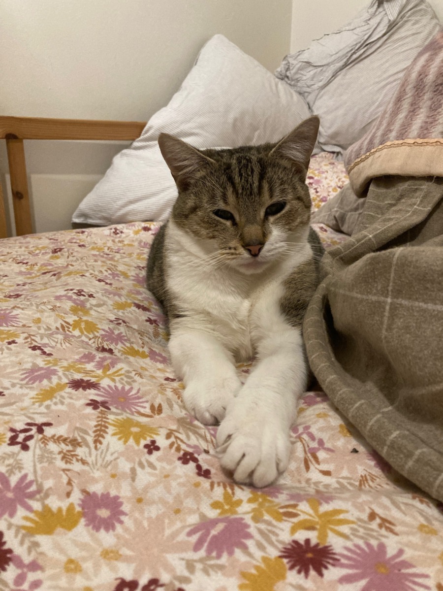 She's becoming a very affectionate girl. Twiggy loves to hang out in the same room as you, following from space to space like a furry shadow, but she's also increasingly seeking out cuddles and attention. When bedtime arrives, you'll find her claiming her favourite spot at the foot of your bed, and she's discovered the joy of belly rubs – a sure sign of her growing confidence and trust.