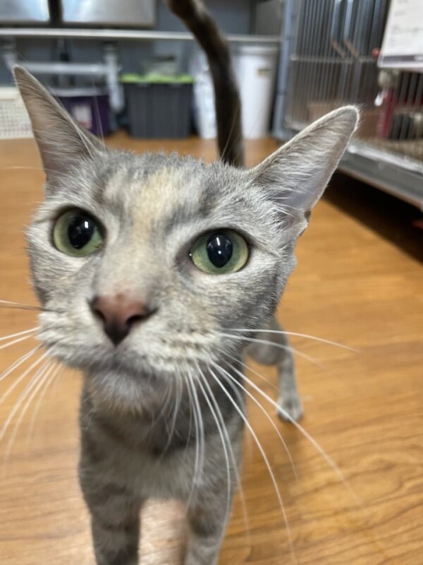 Hello, my name is Elena and I'm a 1-year-old Domestic Short Hair cat. I'm a girl who loves to play, explore, and spend quality time with my human friends. I'm not sure if I'm a queen or a diva, but I do know that I love to be the center of attention. I have a beautiful, short coat that's easy to maintain, and I promise to keep my fur looking fabulous for all our selfie sessions. I'm a bit of an adventurer, so a home with plenty of space would be purr-fect for me. I'm curious and love to explore my surroundings, so prepare for some fun and games! I'm always up for a good cuddle session too, especially after a day of playing and exploring. My favorite thing is rubbing against your legs and purring loudly to show my affection. I'm quite social, so I would love a home where I can get plenty of attention. If you're looking for a friendly, playful, and affectionate companion, I might just be your perfect match. I can't wait to meet my forever family and start our adventures together!