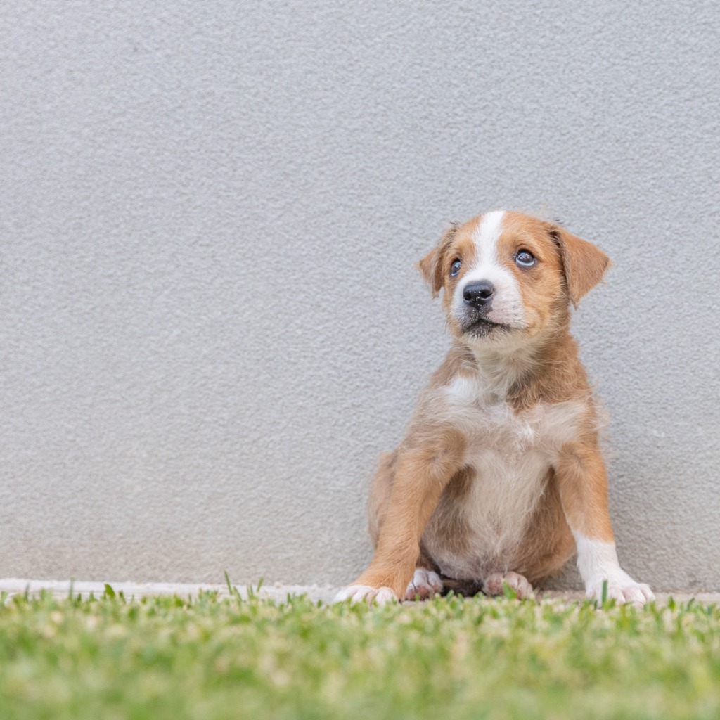 Meet Audrey! This happy and independent pup loves to explore the house and garden, then loves a good snuggle when it's time to recharge her batteries. She is happy to say hi to pretty much anyone but needs to be given time when introduced to new furry friends. She will benefit from going to puppy classes to help her build her confidence and have slow and positive introductions. Audrey is very food motivated which should make training easy, she also likes to please. She is well on her way to being toilet trained and always happy to come running for food but is a bit young to have learned anything else. Audrey is currently in foster care with her brother and a 3.5 year old Golden Retriever and is taking everything in her stride sleeping through barking, power tools and the robot vacuum. Sweet and intelligent Audrey is looking for a family to call her own, who will invest in her development and training. As with any puppy, she'll need your time to live her best life.